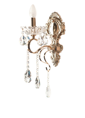 неподдельным символом истинного классического вкуса и роскоши является бра BCL-656W/1 E14 FGD от ТМ Brille. За счет способности отражать свет от ламп на гранях камушков, оно станет вашим любимым осветительным прибором в доме. Изготовлено бра из металла и стекла. Конструкция состоит из металлического золотистого основания, к которому с помощью фигурного держателя прикреплен патрон для лампы, помещенный в стеклянную тарелочку. Внешне конструкция данного светильника напоминает старинный канделябр, вот только вместо восковой свечи источником света служит одна электрическая лампочка с цоколем Е14 мощностью 40 Вт. Выбирать лучше лампочку свечевидной формы, с ней осветительный прибор будет выглядеть целостно. Ширина: 120 мм, длина: 370 мм, высота: 250 мм