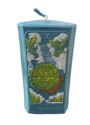 Свеча на изменения к лучшему и путешествия Таро "Колесо Фортуны" Цвет: голубая Длина 10 см