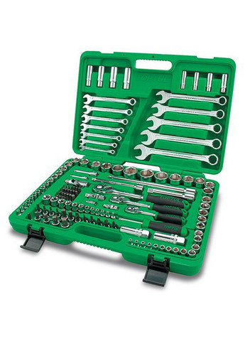 В комплект набора инструментов Expa EX-8032 входят: 13 торцевых головок 1/4" : 4; 4.5; 5; 5.5; 6; 7; 8; 9; 10; 11; 12; 13; 14 мм; 8 высоких торцевых головок 1/4" :6, 7; 8; 9; 10; 11; 12; 13 мм; 4 высоких торцевых головок 1/2": 14,15,17,19 мм; 18 торцевых головок 1/2" :10, 11, 12, 13, 14, 15, 16, 17, 18, 19, 20, 21, 22, 23, 24, 27, 30, 32 мм; две головки для свечей зажигания (16 и 21 мм ); головки с насадкой 1/4" HEX 3,4,5,6 мм; головки с насадкой 1/4" TORX T8, Т10, Т15, Т20, Т25, Т30; головки с насадкой шлицевой 1/4'' 4, 5.5, 7мм; головки с насадкой 1/4'' PH1, PH2; головки с насадкой 1/4'' PZ1, PZ2; насадка 5/16'' 30 мм; для ударной отвёртки HEX 8, 10, 12, 14 мм; для ударной отвёртки TORX T-40, Т-45, Т-50, Т-55; для ударной отвёртки шлицевая 8, 10, 12 мм; для ударной отвёртки PH3, PH4; для ударной отвёртки PZ3, PZ4; трещотка с быстрым сбросом 1/4"; трещотка с быстрым сбросом 1/2"; удлинители 1/4": 50, 100 мм; гибкий удлинитель 1/4": 150 мм; карданный шарнир 1/4"; вороток Т-образный 1/4"; отвертка -битодержатель 1/4"; удлинители 1/2": 125, 250 мм; вороток Т-образный 1/2"; адаптер для бит 1/2"; ключи шестигранные Г-обр 1,5; 2; 2,5 мм; ящик для инструментов.
