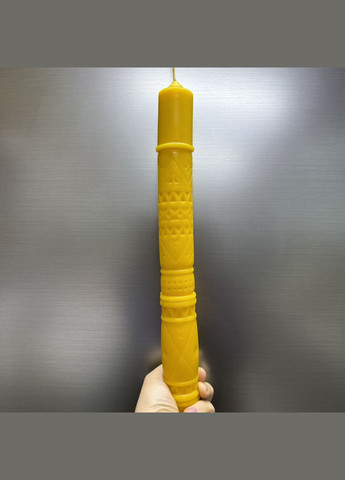 Свеча Стретенская Гуцульская 34 см из пчелиного воска. Высота 340 мм. Диаметр 35 мм. Вес 320 грамм Продолжительность горения 30-35 часов. Все наши свечи изготовлены собственноручно с использованием натурального пчелиного воска с собственной пасеки, которая находится в Днепропетровской области в экологически чистом районе. Восковая свеча не чадит. Восковую свечу надо ставить на подсвечник, чтобы не испачкать скатерть. Воск, который выплавляется при сгорании свечи, не надо выбрасывать. К нему можно добавить масло (1: 1), поставить на водяную баню - и получится замечательный крем для рук. Масло надо добавлять нерафинированное, например оливковое, кукурузное (очень хорошо для сухой кожи). В свечах использован только забрусный воск, который при застывании может усаживаться до 5%. Поэтому дно свечи может иметь следы усадки.
