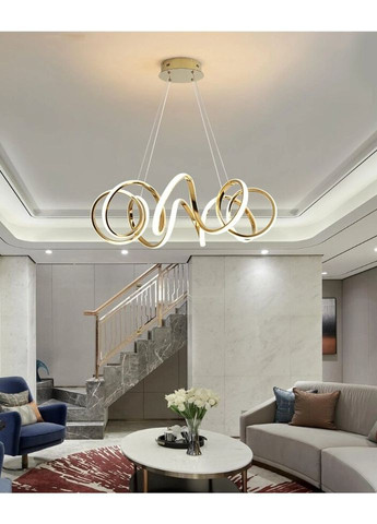 Подвесная люстра LED, корпус металлический, высота регулируеться. Встроенные светодиоды, три режима освещения ( теплый, холодный и нейтральный свет ), мощность 2*55 вт, крепление к потолку на планку, основа диаметром 13 см.Светодиодные люстры добавляют в ваш интерьер стильность и комфорт. Светодиодная люстра при любом напряжении светит с одинаковой яркостью и не боится незначительных скачков напряжения. Светодиодные люстры потолочные для квартиры или коммерческого помещения не нагреваются во время интенсивной эксплуатации и сохраняют первоначальный вид на протяжении всего срока службы. На все модели производитель дает гарантию, как доказательство качества. Светодиодные LED люстры не приносят вреда здоровью пользователя и окружающей среде. В люстрах налажена пассивная система отвода тепла, они не нагревают корпус устройства, поэтому отлично подходят для натяжных потолков, столь чувствительных к нагреву. Конструкция светильников выполнена из экологически чистых материалов, которые не выделяют токсинов во время эксплуатации. LED люстры - это очень экономичный на сегодняшний день вариант освещения, по сколько с каждым годом вопросы экономии электроэнергии становятся все актуальнее.Высота люстры, см: 35 минимальная 180 максимальнаяШирина люстры, см: 75Диаметр/длина, см: 75Материал плафона: СиликонМатериал корпуса: МеталлЦвет плафона: БелыйЦвет корпуса: ЗолотоКоличество источников света: встроенное LED освещениеМощность, Вт (макс): 2*55 (потребляемая)Тип патрона: НетПульт д/у: НетНочная подсветка: НетПроизводитель: Китай