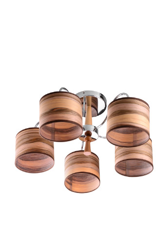 идеальный вариант для освещения небольшой уютной кухни с невысоким потолком – люстра BKL-638S/5 E14. Потолочная модель подойдет и для загородного дома, ибо выполнена с использованием шпона – тонкого слоя древесины с текстурным рисунком (хвойных или лиственных пород). Шпон отличается экологичностью, долговечностью, устойчивостью к влажности. Для загородной кухни в самый раз. Конструкция представлена металлическим хромированным каркасом, к которому прикреплено пять плафонов из шпона. Они выполнены в форме цилиндра, приглушают излучаемый лампами свет, придавая ему мягкость. Для работы необходимо использовать пять ламп с цоколем Е14 мощностью 4 Вт. Это могут быть как лампы накаливания, так и энергосберегающие или светодиодные. Рассчитан светильник для работы от сети 22 В. Тип крепления – монтажная планка. Дополнительная информация: Высота плафона – 12 мм Диаметр плафона – 15 мм. Высота х диаметр (мм): 500х290