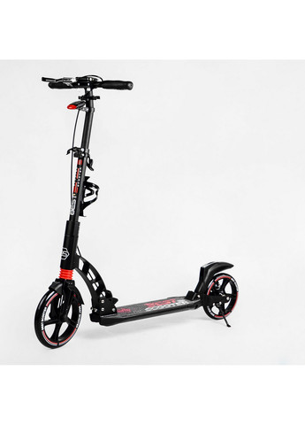 Двухколесный самокат Best Scooter колеса PU, фонарик, 2 амортизатора, складной, дисковый тормоз. Black and red (114292) Двухколесный самокат от Best Scooter с дисковым тормозом – станет отличным подарком, как взрослому, так и ребенку! Модель имеет металлическую прочную основу с двумя амортизационными блоками. Два больших колеса диаметром 230 мм и 200 мм изготовлены из полиуретана и отличаются повышенной износоустойчивостью. Торможение самоката производится двумя способами: тормозной рукояткой на руле, сжимающей колодки дискового тормоза на заднем колесе, или ножным нажатием на крыло заднего колеса. Руль регулируется в 3х положениях, благодаря этому Вы легко подберете комфортную высоту для себя или ребенка. Также на руле установлен специальный зажим, который крепко фиксирует ручки и убирает дребезжание. Мягкие резиновые грипсы обеспечат невероятно комфортное и уверенное управление, так как руки ребенка не соскользнут с основания. Самокат имеет удобную систему складывания, его удобно хранить и транспортировать. Достаточно нажать ногой на педаль у основания руля и сложить самокат до щелчка. Представленная модель самоката производится на фабриках согласно европейскому критерию EN 71. Данный сертификат устанавливает ряд требований, предотвращающих основные риски: физические и механические, воспламеняемые, химические, электрические, гигиенические риски./p/gt; Особенности: дисковый и ножной тормоз; 2 амортизационных блока – передний и задний; крылья над колесами; легкая система складывания; удобные резиновые грипсы; зажим руля; флягодержатель; светодиодный фонарик; наклейка на противное – наждак. Характеристики: Тип: Двухколесный самокат Возраст: 3+ Рост: 1.45 см до 1.95 см Полиуретановые колеса Переднее колесо: 230 мм, заднее: 200 мм Высота руля регулируется от 93 см до 103 см, с фиксацией в 3х руля: 38 см Размер противный: 49 х 14 см Высота противни от пола: 10 см Максимальная нагрузка: 100 кг Упаковка: Коробка * Характеристики и комплектация товара могут изменяться производителем без уведомления Производитель: Best Scooter. Материалы: Алюминий, Алюминий, Металл, Полиуретан, Резина, Высококачественная пластмасса. Детский возраст: 3 года, 4 года, 5 лет, 6 лет, 7 лет, 8 лет, 9 лет, 10 лет, 11 лет, 12 лет, 13 лет, 14 лет, 15 лет, 16 лет. Страна: Китай. Подшипники: ABEC 7. Тормоза: Дисковый. Возрастная категория: Детские. Материал колес: Полиуретан. Максимальная нагрузка, кг: 100. Дополнительные характеристики: Колеса PU, фонарик, 2 амортизатора, складной, дисковый тормоз, флягодержатель. Материал: Алюминий, Металл, Полиуретан, Резина, Высококачественная пластмасса. Тип: простой. Торговая марка Best Scooter. Цвет: черно-красный. Размер изделия: 49х14х93-103 см. Колеса: Полиуретан (PU). Пол ребенка: Мальчик, Девочка. Количество колес: 2.