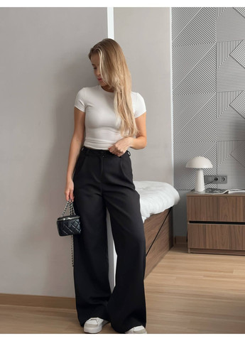 Цвет Черный / Материал Костюмная / Фасон Прямые / Высота посадки Высокая талия / Узор Однотонный