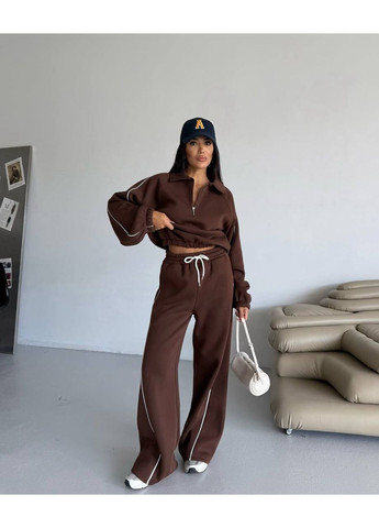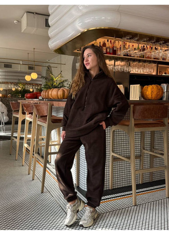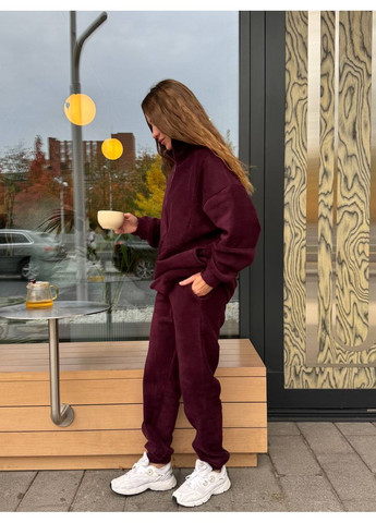 Теплый женский костюм из мягкого флиса, приятного к телу и комфортного в ношении. Комплект состоит из свитшота на молнии и брюк. Свитшот имеет воротник-стойку, длинные рукава с эластичными манжетами и удобный свободный крой. Брюки с высокой посадкой, поясом на резинке и манжетами внизу. Идеальный вариант для прохладного времени года, прогулок или уютного отдыха.