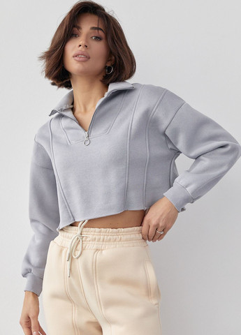 Свитшот из мягкой ткани с круглым вырезом и длинными рукавами. Застежка на металлическую молнию спереди.