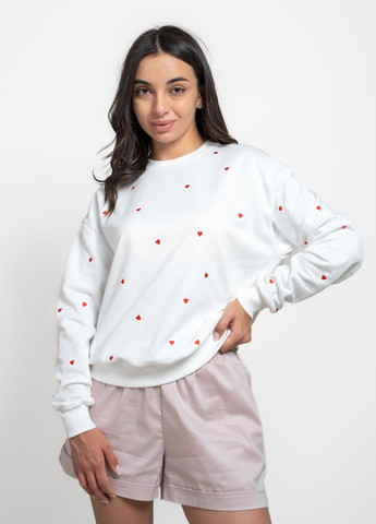 Уютный свитшот, прямого силуэта, с двумя передними карманами, сшит из плотного турецкого трикотажа с лёгким эффектом махры внутри.
