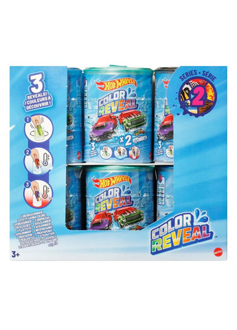 Оригинал Mattel из Америки. Hot Wheels Color Reveal 2 Pack 1:64 Scale Vehicles with Surprise Reveal & Repeat Color-Change, GYP13. Набор транспортных средств Hot Wheels Color Reveal 2 полон удивительных сюрпризов! Внутри барабана находятся две машины Hot Wheels Color Reveal в масштабе 1:64, покрытые специальным покрытием Color Reveal. Для первоначального вскрытия наполните барабан водой и покрутите в нем каждую машину, пока вода не изменит цвет, вытяните машину, и скрывающийся под ней красочный дизайн будет открыт! Хотите снова изменить его внешний вид? Наполните бочку холодной водой и погрузите в нее каждую машину, чтобы сделать еще одно потрясающее превращение! Замените его, погрузив в теплую воду! Повторяйте это снова и снова, чередуя теплую и холодную воду. Это как две машины на одной! В каждой баночке находится две машинки. Цвет крышки баночки соответствует цвету смываемой краски, а какие сами машинки неизвестно, это сюрприз! Заказывая этот товар, Вы соглашаетесь и принимаете, что получите СЛУЧАЙНЫЙ НАБОР!