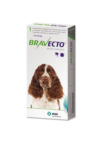 Противоразитарные жевательные таблетки Бравекто для собак – специальный препарат для защиты питомца от иксодовых клещей и блох, который разработан в виде таблеток, имеющих аппетитный вкус и запах. Препарат Bravecto by MSD Animal Health – Bravecto Chewable Tablets For Dogs обладает широким спектром действия, обеспечивая защитную функцию всего организма на длительный период времени (около 12 недель). Преимущества: Полная защита на целый год от блох всего за четыре приема, означает меньшее количество процедур. Отличная защита от паразитирующих насекомых на каждый сезон. С Бравекто Вы можете быть спокойны за Вашу собаку, она защищена в течение 12 недель от блох и клещей с помощью одной дозы. Таблетка вкусная, легко разжевывается. Воспитанника не нужно купать, так что Вы можете бороться с паразитами без неприятных процедур и не бояться, что он слижет препарат или запачкает им мебель или ковер. Состав: Флураланер (4-[5-(3,5-дихлорфенил)-5-(трифторметил)-4Н-изоксазол-3-ил]-2-метил-N-[2-оксо-2-(2,2,2-трифторэтиламино) этил] бензамид) - инсектоакарицид группы изоксазол. Вспомогательные вещества: - ароматизатор "Super Premium in Powder for Dog" - 20%, - сахароза - 7%, - натриюлаурилсульфат - 2%, - динатрия памоат моногидрат - 2%, - стеарат магния - 0,75%, - аспартам - 0,25%, 0,1% бутилокситолуол) – 12,3%, – полиэтиленгликоль – 18,5%, – кукурузный крахмал – 16,06%. Фармакологические свойства: бравекто относится к инсектоакарицидным лекарственным препаратам системного действия. Действующее вещество, в 1 таблетке Флураланер: 250 мг для собак массой > 4,5 кг – 10 кг. Лекарственная форма: жевательные таблетки. Показания к применению: Бравекто назначают собакам с целью профилактики и лечения акарозы, вызываемых иксодовыми клещами (Ixodes ricinus, Ixodes hexagonus, Ixodes scapularis, Ixodes holocyclus, Dermacentor reticulatus, Dermacentor variabilis и Rhipicephalus sangu). Препарат назначают с целью снижения риска заболевания бабезиозом, переданным иксодовыми клещами, инфицированными Babesia canis. Препарат назначают с целью профилактики и лечения вызываемой блохами энтомозы (Ctenocephalides felis и Ctenocephalides canis). Бравекто назначают при комплексной терапии аллергического дерматита, вызываемого блохами. Препарат назначают для предотвращения заражения дипилидиозом, передаваемым блохами, инфицированными личинками гельминта Dipylidium caninum. Бравект назначают для лечения демодекоза, вызванного Demodex canis. Препарат назначают для лечения чесотки, вызванной Sarcoptes scabiei. Разломка таблеток не допускается: следует убедиться в том, что собака полностью проглотила необходимую дозу препарата. Противопоказания: производители препарата указывают на наличие следующих противопоказаний: возраст щенка менее 2 месяцев, наличие индивидуальной непереносимости, наличие хронических заболеваний органов пищеварения. Побочные эффекты: производителем заявлена информация об отсутствии выявленных побочных эффектов при действии препарата, а точнее практически не наблюдаются. Форма выпуска: бравекто выпускают в форме жевательных таблеток, которые упаковывают по 1 штуке в запаянные блистеры из алюминиевой фольги. Срок годности: срок годности в упаковке производителя при соблюдении условий хранения – 2 года с даты производства. Условия хранения: бравекто хранят при температуре не выше 30 °С. Наименование бренда: Bravecto (Бравекто)