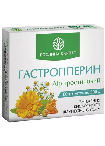 Фитосредство применяется для снижения кислотности желудочного сока. Повышает защитные свойства слизистой желудка, 12-перстной кишки и стимулирует регенерацию тканей, усиливая процесс восстановления клеток слизистой желудочно-кишечного тракта. Способствует качественному и быстрому заживлению эрозий и язв ЖКТ. Оказывает успокаивающее и обезболивающее действие на органы ЖКТ, уменьшает процессы брожения в ЖКТ, снимает спазмы кишечника, устраняет неприятные симптомы: дисбактериоз, запоры, метеоризм. Действие комплекса и полезные свойства: способствует нейтрализации повышенного уровня соляной кислоты в желудке; повышает защитные свойства слизистой желудка, 12-ти перстной кишки; стимулирует регенерацию тканей, усиливая процесс восстановления клеток слизистой желудочно-кишечного тракта; способствует качественному и быстрому заживлению эрозий и язв ЖКТ; оказывает успокаивающее и обезболивающее действие на органы ЖКТ; оказывает антибактериальное действие; в комплексной программе помогает избавиться от Helicobacter pylori, убирая причину развития эрозий слизистой желудка и 12-перстной кишки; уменьшает процессы брожения в желудочно-кишечном тракте, снимает спазмы кишечника, устраняет неприятные симптомы: дисбактериоз, запоры, метеоризм; положительно влияет на состояние ЖКТ, печени, желчевыводящих путей, поджелудочной железы. Действие активных компонентов Корень аира камышового: обладает антибактериальными, обезболивающими, отхаркивающими, противовоспалительными, желчегонными, антигельминтными свойствами. Корень солодки голый: оказывает мочегонное, противовоспалительное, спазмолитическое, антигистаминное, противоязвенное действие, регулирует водно-солевой обмен в организме. Цветки календулы: обладают выраженным противовоспалительным, бактерицидным, противовирусным, ранозаживляющим, спазмолитическим свойством; улучшает процессы регенерации; возбуждает секреторную активность органов пищеварения; стимулирует желчеобразование и желчевыделение. Цветки ромашки : устраняют боль и воспаление в органах пищеварительной системы. Нормализует секрецию печени и желчного пузыря, оказывает обезболивающее, спазмолитическое и антисептическое действие, устраняет бродильные процессы, повышает аппетит. Трава вереска : возбуждает функцию выделения желудочных желез. Состав: Компонент: Количество в 1 таблетке Корень аира камышового 100 мг. Корень солодки голый 100 мг. Цветки календулы 50 мг. Цветки ромашки 50 мг. Трава визга 40 мг. Крахмал 60 мг. Вспомогательное вещество – микрокристаллическая целлюлоза Рекомендуемые дозы: детям с 12 лет и взрослым принимать по 2 таблетки трижды в день за 30 минут до еды в течение месяца. При необходимости курс можно повторить. Перед употреблением посоветоваться с врачом. К приему фитосредств рекомендуется подходить индивидуально. Предостережение: Храните товар в недоступном для детей месте. Не применяйте диетическую добавку в качестве замены полноценному питанию. Следуйте указанной производителем дозе. Консультируйтесь с врачом или фитоконсультантом в следующих случаях: если у вас есть аллергия на любые ингредиенты комплекса; при беременности и в период кормления грудью. Страна происхождения товара: Украина. Храните товар при температуре указанной изготовителем на упаковке товара. Срок годности то