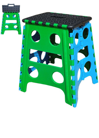 Раскладные табуреты в настоящий момент набирают популярность. Они удобны, их можно складывать и убирать до следующего использования. Данный стульчик - плотный, массивный стул, крепкий и надежный. Имеет не скользящее сиденье, для комфорта на даче или дома можно положить мягкую подушку. Табурет можно брать с собой на рыбалку или пикник. Характеристики: - материал: плстик - цвет: зеленый с красным - максимальная нагрузка до 100 кг - вес: 1 кг - ширина: 28.5 см - глубина: 22 см - высота: 32 см