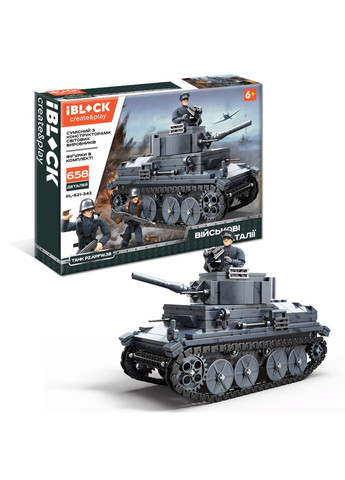 Конструктор из серии IBLOCK Военная техника точно понравится ребенку, который обожает устраивать игрушечные сражения. Из 658 больших и маленьких деталей, а так же фигурок солдатиков, маленький командир может собрать стилизированную модель лёгкого танка времен Второй Мировой войны Panzerkampfwagen 38 (Pz.Kpfw.38). Благодаря фантазии малыш может собрать свою собственную модель танка, гусеничной машинки или катера, которые пригодятся его бойцам в предстоящей битве. Детали и элементы фирмы iBlock полностью совместимы с блочными конструкторами Lego, Sluban, Bela, Brick, Ausini и многими другими. Изделие изготовлено из экологического пластика, соответствует санитарно-техническим нормам и стандартам качества.
