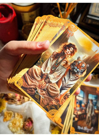 Размер карты 10,2*6 см. Эти карточки были вдохновлены в сумерки одного темного дня, когда автор, находясь в одиночестве в пустынях американского Юго-Запада, созерцал обилие свободы и связи вокруг. Видение пришло ночью, когда Твои сцены, насыщенные животным миром, магией и красотой, оживали с богинями, гордо, яростно и дико стоящие среди них. С помощью коллажа, потусторонние образы богинь просвечивают мистические пейзажи, полные символической флоры и фауны, направляя Божественную Женскую Энергию и приглашая нас раскрыть ее потенциал. Это бревно, насыщенное глубоким символизмом, уходит корнями в традиционное бревно Райдера-Вейта-Смита, используя его рассказ, чтобы обеспечить баланс между светом и ливаем в жизни. Богини, изображенные на картах, не являются конкретными, а скорее архитектурными композициями из разных культур, становясь теми, кого мы можем узнать в самих себе и наших личных историях. Они олицетворяют вечный Божественный Женский Дух, который есть в каждом из нас, независимо от пола или этнического происхождения. Этот Дух наполняет нас сочувствием, интуицией, творчеством, воспитанием, чувственностью, силой и мудростью. Работая с Таро Интуитивная Ночная Богиня, вы откроете свою собственную силу и магию, а также научитесь доверять своей интуиции. Используйте эти карты, чтобы найти сочувствие и вдохновение в ваших днях и ночах, чтобы быть в полноте того, кем вы являетесь и кем должны быть. Эта колода подходит как для начинающих, так и для опытных практиков Таро, предлагая все больше мудрости с каждым чтением. Окунитесь в каждую карту, отправляясь в увлекательное путешествие по космосу.