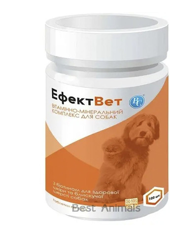 Ветсинтез Эффектбет восполняет дефицит биологически активных веществ в организме животных. Биодоступные формы биотина, таурина и других активных веществ предотвращают нарушение развития кожно-шерстяного покрова, улучшают состояние кожи и шерсти животного, ускоряют замену шерсти во время линьки, придают блеск, плотность. Особенности: растительные настои стада и чистотела ускоряют быстрое восстановление кожи после повреждений, ускоряют рост шерсти; сера хорошо влияет на окрас шерсти – улучшает ее яркость; полиненасыщенные насыщенные жиры, растительные масла и рыбий жир оказывают положительное влияние на состояние шерсти и кожи животных; рекомендовано в случае усиленной потери шерсти, зуда, перхоти, экземы; добавка стимулирует рост и развитие животного, положительно влияет на функционирование органов зрения, углеводно-липидный обмен, состояние кожи и слизистых, сальных и потовых желез, улучшает оплодотворение, предупреждает дистрофические изменения в печени, семенниках, скелетных мышцах; изготовлена на производстве с сертификацией GMP+ – гарантия качества и безопасности добавки. Способ применения: применяют перорально с кормом или скармливают животным напрямую. Профилактика – 2 таблетки по 0.5 г в сутки. Курс приема не менее 4 недель. В качестве вспомогательного средства при лечении: 2 таблетки по 0.5 г в сутки. Курс лечения 4-6 месяцев (по рекомендации врача ветеринарной медицины).