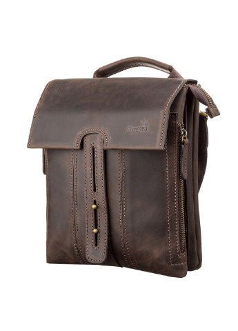 Материал: натуральная винтажная кожа; Размеры (ШхВхГ, см): 22х26х2.5; Цвет: коричневый; Страна производитель: Украина. Описание: - два вместительных отделения; - карман-перегородка; - карман для телефона, отделения для ручек и держатель для ключей; - наружу на передней стенке карман под клапаном; - наружу на задней стенке карман на молнии; - крепкая подкладка из прочной ткани; - цвет фурнитуры: латунь; - регулируемый текстильный плечевой ремень с элементами кожи; - сумка закрывается клапаном на хлястике; - аксессуар упакован в пылезащитный чехол. Мужская кожаная сумка-планшет небольшого размера с клапаном и хлястиком. Изделие выполнено из натуральной винтажной кожи, характерными признаками которой являются: неоднородность окраса и потертости, которые придают изделию изысканного, индивидуального вида. Аксессуар прошит светлой нитью, что придает изделию прочности и оригинального вида. Аксессуа