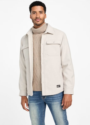 Мужская куртка-рубашка GUESS. Теплая куртка-рубашка с классическим отложным воротником. Подкладка из мягкого искусственного меха на спинке и полочках. Рукава имеют гладкую тонкую подкладку. Застегивается на пуговицы. Два нагрудных кармана с клапанами на пуговицах и два нижних прорезных кармана. Манжеты рукавов на пуговицах. Закругленный подол. Нашивка с логотипом спереди внизу. Отличное качество.