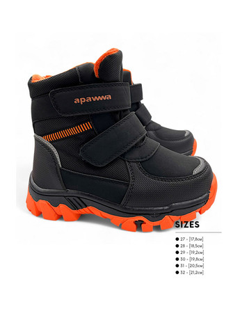 Детские зимние сапоги Apawwa для мальчика – стильная и теплая обувь на каждый день. Верх изготовлен из качественной экокожи, которая хорошо защищает от влаги и легко чистится. Внутренняя часть и стелька утеплены натуральной овчиной, что обеспечивает тепло даже в мороз. Прочная ПВХ-подошва не скользит и дарит уверенность во время прогулок. Классический черный цвет делает модель универсальной – подходит к любой зимней одежде. Apawwa – комфорт и тепло для активных мальчиков зимой! Размерная сетка: 27р. стелька 17,8 см 28р. стелька 18,5 см 29р. стелька 19,2 см 30р. стелька 19,8 см 31р. стелька 20,5 см 32р. стелька 21,2 см