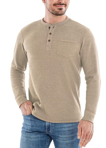 Наши базовые термофутболки с длинным рукавом отлично сидят и согреют вас осенью и зимой. Вам больше не придётся носить свободные, тяжёлые, мешковатые футболки, которые придают вам неряшливый и неопрятный вид. Эти вафельные хенли с тремя пуговицами будут выглядеть так, будто они были сшиты специально для вас.