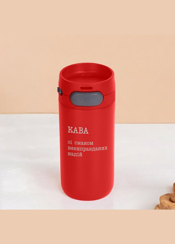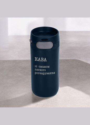 Термокружка Stay "Кофе со вкусом легкого разочарования" Идеальна на утро, когда планы летят кувырком. Не дайте разочарованиям испортить настроение – с этой термокружкой вы всегда сможете найти позитив в малейших мелочах. Особенности: Температура: способна сохранять тепло зимних напитков и прохладу летом в течение 6 часов. Наслаждайтесь горячим кофе или чаем на морозе или охлажденным лимонадом в жару. Дизайн: уникальный дизайн производится методом гравировки, что гарантирует вечность надписи и ее стойкость к износу. Благодаря этому вы сможете наслаждаться стильным видом кружки еще много лет. Практичность: крышка с нажимной кнопкой, которая открывает клапан, при необходимости надежно блокируется слайдером от случайного открывания.
