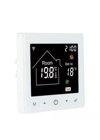 Терморегулятор М2 с Wi-Fi – это устройство интеллектуального управления системой электрического отопления теплым полом. Терморегулятор последнего поколения оснащен функцией удаленного управления через Wi-Fi. Это означает, что пользователь может изменять настройки или задавать температурный режим с помощью смартфона из любой точки, где есть доступ в Интернет. Управлять температурой в помещении можно с помощью программы TUYA или Smart Life и аналогичной программой. Этот терморегулятор можно применять в системе "Умный дом" М2 - программируемый терморегулятор пленочными, алюминиевыми матами и т.д. Регулятор рассчитан на погрузку 3200 Вт (16 А), что эквивалентно ~15-20 м2 теплого пола. В комплекте с регулятором поставляется выносной температурный датчик длиной 3 метра. Номинал термодатчика – 10 кОм при 25°С. Датчик монтируется непосредственно в пол в гофротрубку 9/12, которая в комплект к терморегулятору не входит. Терморегулятор для теплого пола М2 предназначен для автоматической регулировки температуры в помещениях, оборудованных системами электрического или водяного отопления с использованием датчика температуры пола и встроенного датчика температуры (на лицевой панели). или выбрать регулировку температуры пола. Особенностью терморегулятора М2 является возможность регулировать как по температуре пола, так и по температуре в комнате (например, температуру в комнате 22 градуса и температура пола 30 градусов) Можно настроить температуру, которая будет наиболее комфортной для Вас. информация.Терморегулятор управляется системой «теплый пол», включая ее в удобное для Вас время в разные дни недели, и позволяет задать 6 режимов работы в течение дня с разной температурой. Возможность регулировки по дням недели можно выбрать 5 рабочих и 2 выходных дня, 6 рабочих и 1 выходной, или одинаковый график работы на все 7 дней. Также можно выбрать "ручной" или "комфортный" режим. Вы можете использовать стандартные заводские установки или настроить терморегулятор на индивидуальный режим работы. Программируемый терморегулятор предусматривает настройки до 6 периодов обогрева в сутки отдельно каждый день недели. Такая оптимизация отопления позволяет не только обеспечивать высокий уровень климатического комфорта, но экономить 30-50% электроэнергии. Все настройки и статистика энергопотребления хранятся в облаке, что делает невозможным потерю данных при отключении электроэнергии. Преимущества: Благодаря современному дизайну - легко впишется в любой интерьер. Незаменимый элемент умного дома Управление с помощью смартфона из любой точки мира для управления. термостатов. Термостатам и группам термостатов можно присваивать уникальные названия, например - кухня, спальня и т.д. Защита от замерзания и перегрева. Управление через датчик температуры воздуха или температуры пола. Программирование на 7 дней в неделю и 4 временных отрезка в день. Создание Smart Scene - одновременное программирование. 20 м2 (16А), ограничений по площади водяного теплого пола нет. Характеристики: Простота в использовании. управляется: кнопками на сенсорном экране через приложение Tuya Smart/Smart Life на смартфоне по WiFi голосовым управлением Amazon Echo, Google Home, Tmall Genie, IFTTT. Применяется для управления водяным/электрическим теплым полом. на дне недели, установка блокировки, переключение режимов, энергосбережени