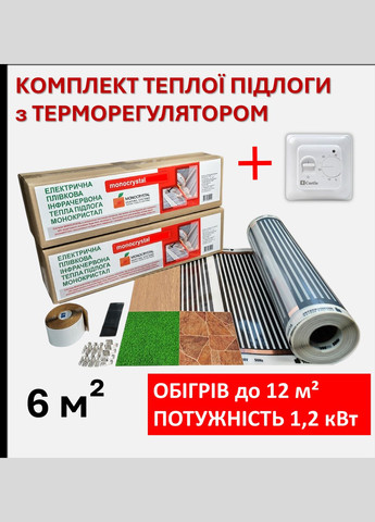 Комплект для монтажа теплого пола ЕНП-1.ПК - это отличный выбор для создания комфортного тепла в любом помещении. Основой комплекта является инфракрасная электрическая нагревательная пленка Монокристалл ЕНП-1, которая обеспечивает равномерный и эффективный обогрев. Этот комплект для монтажа теплого пола имеет следующий состав: инфракрасная нагревательная пленка Monocrystal (площадью 6 кв.м); монтажный комплект (клеммы, изоляция + провод); терморегулятор; техпаспорт с гарантией; фирменная упаковка. Терморегулятор, входящий в комплект, обеспечивает возможность точной настройки и поддержания желаемой температуры. Это не только повышает комфорт, но и позволяет значительно экономить электроэнергию. Благодаря этому вы можете наслаждаться теплом в своем доме или офисе, не волнуясь о чрезмерных расходах. Комплект для монтажа теплого пола ЕНП-1.КП: особенности и преимущества Экономия средств: Стоимость втрое ниже других видов отопления, таких как газовое или электрическое кабельное. Вы также можете сэкономить до 30% на расходах на тепло. Универсальность: Может монтироваться на любые поверхности и под любые покрытия: керамическая плитка, ламинат, ковролин, паркет, линолеум. Безопасность: Не несет угрозы для здоровья людей и животных, электро- и пожаробезопасна. Комфорт: Эта система не сушит воздух, ионизирует его, очищает от пыли и микробов, способствует устранению неприятных запахов. Длительный срок службы: Гарантия на продукт составляет 15 лет, а срок службы превышает 50 лет. Характеристики: Площадь пленки, кв.м 6 Площадь обогрева, кв.м 12 Длина пленки, метр пог. 10 Количество секций 40 Количество клемм в упаковке 6 Длина мастичной изоляции, метры 0.6 Провода, метры 7 Напряжение питания 220 В Рисунок пленки линейный Ширина пленки 60 см Размер сегмента 60х25 см Линия отреза каждые 25 см Мощность 1 сегмента 30 Вт Мощность 1 кв.м. пленки 200 Вт Мощность 1 м.п. пленки 120 Вт Площадь обогрева 1 кв.м пленки до 2 кв.м помещения Габариты упаковки 63х16х16 см Вес 1 кг Гарантия производителя 15 лет Готовый комплект инфракрасного теплого пола Monocrystal - удобный, экономный и безопасный способ обеспечить комфортную среду в вашем доме, квартире или офисе.