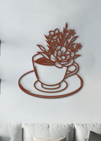 Современная картина на кухню, декоративное панно из дерева "Цветочный кофе".