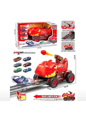 Необычная машинка в форме динозавра – это настоящий игровой центр для маленьких поклонников приключений! Она оснащена мощным инерционным механизмом, который позволяет ей быстро двигаться, а прорезиненные колеса обеспечивают надежное сцепление с поверхностью. Уникальной особенностью является выдвижная дорога, по которой можно запускать маленькие металлические модельки. На спине динозавра расположена пушка, стреляющая специальными снарядами, добавляя динамики и азарта. Размер 28 х 18 х 18 см.