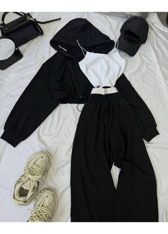 Спортивный костюм тройка Размеры: 42-46 Цвета: серый, графитовый, розовый, черный, коричневый Ткань: двухнитка люкс + микродайвинг Женский спортивный костюм тройка из двухнитки люкс и микродайвинга – стильный и функциональный комплект, который сочетает в себе комфорт, практичность и современный дизайн. Высококачественная двунитка люкс в сочетании с микродайвингом, мягкая, эластичная и приятная к телу. Ткань хорошо держит форму, не деформируется после стирки и обеспечивает комфорт в течение всего дня. Комплект состоит из брюк, укороченной кофты и топа. Оверсайз крой кофты создает непринужденный силуэт, а топ и брюки подчеркивают женственность и свободу движений. Идеален для ежедневной носки, занятий спортом, прогулок или активного отдыха. Легко комбинируется с различной обувью и аксессуарами, позволяя создавать стильные casual и спортивные образы.