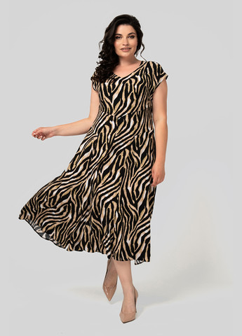 Контрастный черно-белый принт с абстрактными узорами придает ей современный шарм, а легкая, воздушная ткань штапель обеспечивает комфорт в течение всего дня.