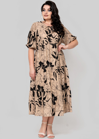 Материал Вискоза, Штапель / Цвет Темно-бежевый / Фасон А-силуэт / Длина изделия Макси / Стиль Кэжуал