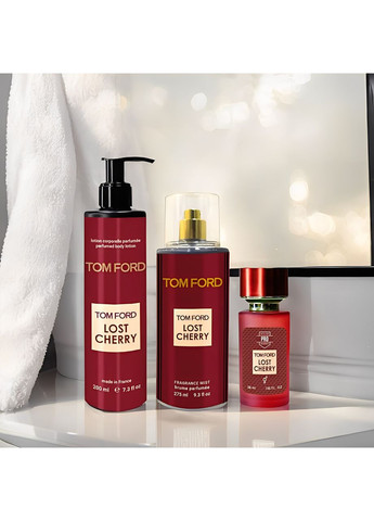 1) Парфюмированный лосьон для тела Tom Ford Lost Cherry 200 мл Парфюмированный лосьон – это возможность окутать кожу всего тела волшебным и освежающим ароматом, чтобы наслаждаться им на протяжении всего дня. Однако это не единственное его свойство. Продукт предназначен для деликатного ухода за эпидермисом, который особенно уместен в летний период. Средство отлично: Увлажняет кожу. Питает ее, насыщая полезными витаминами и минералами. Освежает, даря приятное чувство прохлады. Тонизирует, лишая жжения, зуда и прочих неприятных ощущений. Смягчает кожу, делая ее бархатной, нежной, гладкой и ровной. Уже после нескольких применений кожа приобретет естественный сияние, ее тон улучшится, сухость и шелушение пропадут, а дискомфорт больше не побеспокоит. 2) Tom Ford Lost Cherry ТЕСТЕР PRO унисекс 58 мл Верхние ноты: Горький миндаль, Ликер и Black Cherry; средние ноты: Вишня, Слива, Турецкая роза и Жасмин Самбак; базовые ноты: Бобы тонкая, Ваниль, Корица, Перуанский бальзам, Бензоин, Сандал, Гвоздика (пряность), Кедр, Пачули и Ветивер. Lost Cherry Eau de Parfum Tom Ford, выпущенный в 2018 году, классифицируется как унисекс-аромат и принадлежит семействам Фруктовые, Цветочные и Гурманские. Над ним работали Том Форд и Луиза Тернер. Lost Cherry Eau de Parfum входит в коллекцию Private Blend 3) Парфюмерный спрей для тела Tom Ford Lost Cherry ,275 мл