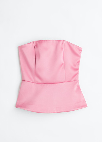 Облегающий фигуру топ-бандо из ткани. Потайная боковая молния, отрезная талия и низ баски. Атласная подкладка. Возможно повреждение бирки. Для размера 44: полуобхват груди - 46 см, длина - 42 см.