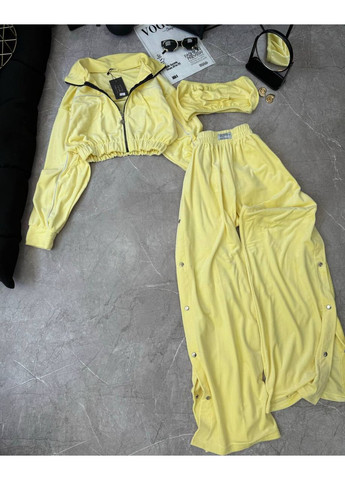 Цвет Желтый / Фасон Тройка / Стиль Спортивный, Повседневный / Узор Однотонный / Материал Велюр