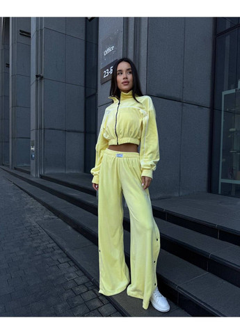 Топ-бандо имеет эластичную резинку, что обеспечивает надежную фиксацию и удобную посадку. Брюки с высокой талией, эластичным поясом и свободным кроем гарантируют комфорт и свободу движений. Легкая кофта с капюшоном дополняет образ и придает ему многофункциональность – ее можно носить как вместе с комплектом, так и отдельно с другими вещами гардероба.
