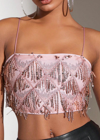 Короткий топ SHEIN BAE с пайетками. Облегающий. Контрастные акценты из пайеток. Ткань не тянется. Тонкие бретели.