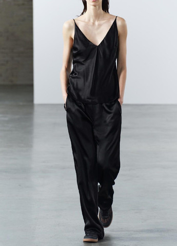 Топ с треугольными чашечками без косточек обеспечивает комфортную, естественную посадку. Съёмные поролоновые вставки позволяют варьировать форму. Регулируемые бретели с изящной золотистой фурнитурой и застёжка на крючок сзади дополняют образ стильными деталями.
