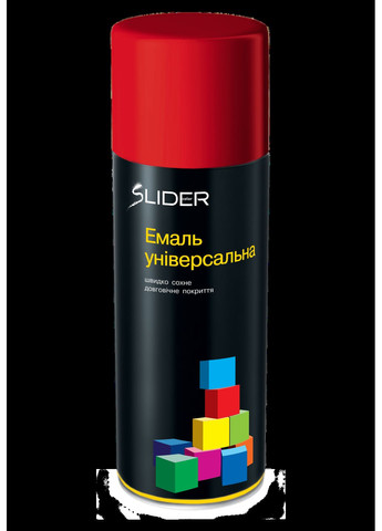 Эмаль универсальная Slider – это быстросохнущая эмаль для покраски: металлических, бетонных, гипсовых, стеклянных и других поверхностей. Удобна для работы с трафаретами. Образует прочное покрытие, устойчивое к механическим и атмосферным воздействиям. Не выцветает на солнце. Площадь покрытия (в зависимости от толщины слоя и цвета эмали) – 1,5 – 2 м²; Время высыхания 7–10 мин. при температуре воздуха +25°C. Состав: алкидная эмаль, смесь органических растворителей, пропан, бутан. Способ применения: Подготовьте поверхность: очистите, отшлифуйте, обезжирьте. При необходимости загрунтуйте; Размешайте содержимое баллона, встряхивая его 2-3 мин, работая нужно время от времени встряхивать баллон; Выполните пробный разбрызг; Держите баллон вертикально. С расстояния 25-30 см нанесите 2-3 тонких слоя эмали с интервалом 3-5 мин.; ВАЖНО! Если эмаль не была использована полностью, переверните баллон разбрызгивателем вниз и, нажав, держите до обесцвечивания струи. ОПАСНО! Легковоспламеняющийся аэрозоль. Баллон под давлением: при нагревании может произойти взрыв! Может вызвать серьезное раздражение глаз, сонливость или головокружение. Хранить в недоступном для детей месте. Беречь от тепла, искр, открытого огня, горячих источников возгорания. Не курить. Не распыляйте на открытый огонь или другие источники возгорания. Не протыкать и не сжигать после использования. Использовать только на открытом воздухе или хорошо вентилируемом помещении. Обратиться к врачу при плохом самочувствии. Беречь от солнечных лучей и хранить при температуре не выше 50°C.