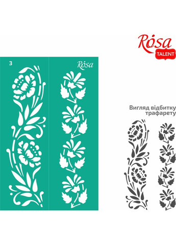 Трафареты универсальные ROSA Talent – это хороший вариант для создания декора на любых предметах. Это хорошая альтернатива для тех, кто не умеет рисовать или хочет нанести одинаковые картинки. Может использоваться с акриловыми красками, красками-спреями, объемными и структурными пастами, гелями и т.д. Основные характеристики: - Материал - прозрачный, прочный пластик, легкий в использовании, может использоваться много раз; - Толщина 0,5мм - универсальный, как для пасты так и для краски; алфавиты и цифры; - тематики: ажуры, цветы, листья, геометрия. Преимущества: - универсальные (для разных поверхностей, и для разных типов красок); - возможность использования как на задекорированных, так и на не задекорированных поверхностях; - прозрачный (хорошо видно место куда наносить рисунок); - возможность делать обратные изображения; - возможность использования на уже задекорированных поверхностях; в популярных тематиках; - легкая очистка основания после использования. Принцип использования:1 шаг. Очистите и высушите декорированную поверхность (при необходимости).2 шаг. Положите/зафиксируйте с помощью малярного скотча трафарет на основу.3 шаг. Нанесите требуемый слой краски (пасты, геля) перпендикулярными к поверхности движениями.4 шаг. Осторожно снимите трафарет с декорированного основания. НЕ делайте резких движений для предотвращения порчи рисунка и трафарета.5 шаг. Промойте трафарет под теплой водой сразу после использования.