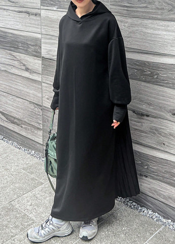 Материал Полиэстер, Трикотаж / Цвет Черный / Фасон Платье-худи / Длина изделия Макси / Стиль Кэжуал