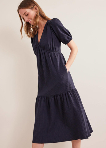 Материал Трикотаж, Хлопок / Цвет Темно-синий / Фасон Ампир / Длина изделия Миди и ниже колена / Стиль Кэжуал