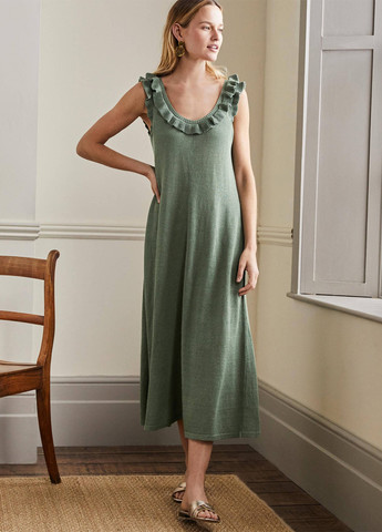 Драпированная ткань (конкретно смесь льна и вискозы) сочетается с женственными оборками в этом игривом трикотажном платье миди. Оборки вокруг круглого выреза и пройм создают непринужденный элегантный вид, а прямая юбка миди и свободный крой — все для комфорта. Выберите своего нового любимца для солнечного дня из нашей подборки универсальных цветов блоков. На средний рост (до 172 см).