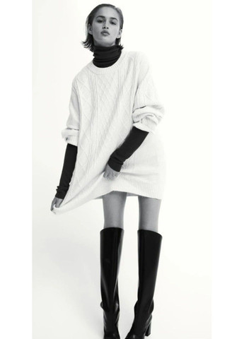 Платье из мягкого трикотажа с шерстью и плетеным узором. Свободный крой. Они имеют сильно спущенные плечи и ребристые рубчики на вырезе, рукавах и подоле. Размер: модель имеет рост 174 см/5'9" и одета в размер М L Длина: короткая Длина рукава: Длинный рукав Крой: свободный крой Стиль: трикотажное платье Декольте: круглый вырез Описание: Молочный однотонный Концепция: МОДА НА ЕЖЕДНЕВНО Ингредиенты Полиэстер 54%, шерсть 5%, акрил 41% Более стойкие материалы Переработанный полиэстер 54%
