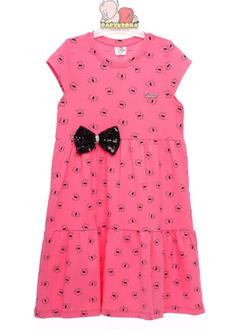 Летнее хлопковое платье для девочки. Короткий воздушный рукав. Свободного кроя. Платье с бантом и принтом. Измерения Размер С - Полуобхват груди см E - Длина изделия от плеча см 86 24 42 Таблица возраста Размер Возраст 86 1г