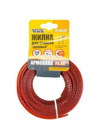 Леска для триммера "Пиранья" MASTERTOOL Предназначена для заправки в катушечный механизм триммеров. Сечение лески "зубчатый квадрат" позволит быстро и легко скашивать даже густую траву. Изумрудный густой газон – безусловно заслуга хозяев, ведь без правильной посадки и постоянного ухода такого результата добиться невозможно. Для стрижки травы одним из самых распространенных технических инструментов считается триммер. Подбор лески для триммера требует не менее ответственного подхода, чем выбор самого оборудования. Качество лески влияет не только на вид вашего газона, но и на работоспособность самой мотокосы. Описание: нейлон ПА6 сердцевина - нейлон ПА66, характеризующийся высокой механической прочностью и твердостью диаметр - 3.00 мм длина - 15 м форма сечения - зубчатый квадрат вес - 0.126 кг MASTERTOOL - один из самых известных украинских брендов инструмента. Деятельность компании стартовала с 1991 года и на сегодняшний момент в любом регионе Украины можно получить инструмент и оборудование для ремонтно-строительных работ этой марки. Отличительная положительная черта инструмента MASTERTOOL - соотношение цена-качество. При достойном качестве материала изготовления и удобной комплектации, инструмент сопровождает небольшая стоимость.