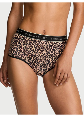 Котоновые трусики-брифы Victoria's Secret с высокой талией Logo Cotton Modern Brief Panty Повседневные трусики из мягкой смеси хлопка и модала Мягкий эластичный пояс с логотипом