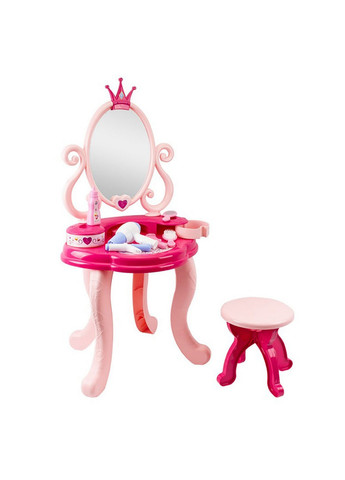 Игровой набор состоит из: - туалетный столик с выдвижным ящиком для аксессуаров; – зеркало. Трюмо со световыми и звуковыми эффектами, когда нажимаете сердечко над зеркалом, зеркало раскрывается и набор засияет под звуки приятной музыки. В комплект входит: фен, расческа, бусы, кольца, флаконы духов, лаков и помады. Игровой туалетный столик имеет выдвижной ящик. Зеркало оснащено звуками и подсветкой. Размер трюмо: 66*45*28 см. Размер упаковки: 43*54*9,5 см.