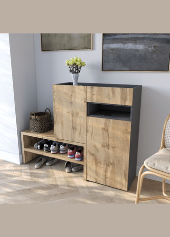 Размер: ● Высота 92 см ● Глубина 28 см ● Ширина 70 см Вес: 25.2 кг Цвета (+ есть возможность комбинировать два цвета): Бетон, Антрацит, Белый, Венге Темный, Дуб Сонома Производитель : Moreli/Украина Описание : Тумба под обувь Т207 – это идеальное решение для организации пространства в вашем коридоре или прихожей. Благодаря компактному дизайну и большой внутренней емкости она обеспечит эффективное хранение вашей обуви. Изготовленная из качественных материалов, она станет акцентом в вашем интерьере и поможет сохранить вашу обувную коллекцию организованной и аккуратной.