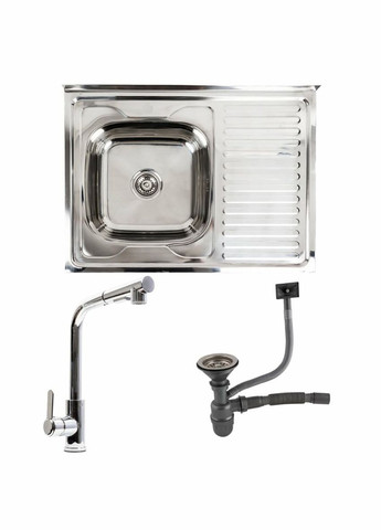 Кухонный комплект: Мойка 8060R полировка + Смеситель FC-1 с выдвижной лейкой Этот кухонный комплект — это стильное и практичное решение для вашей кухни, объединяющее функциональную мойку с правой чашей и современный смеситель с выдвижной лейкой. Он идеально подойдет для тех, кто ищет надежность, удобство и эстетику. На весь комплект распространяется гарантия 1 год. Что входит в комплект? В этот комплект включены: Кухонная мойка 8060R (полированная нержавеющая сталь, правая чаша) Кухонный смеситель FC-1 с выдвижной лейкой (полированная нержавеющая сталь) Сифон (круглый) Полный набор креплений для мойки и смесителя Кухонная мойка 8060R (полированная нержавеющая сталь) Эта мойка является экономным, но качественным вариантом для любой классической кухни. Ее дизайн с правым расположением чаши обеспечивает удобное повседневное использование. Материал: Изготовлена из нержавеющей стали SUS 201, что обеспечивает ее долговечность, прочность и легкость ухода. Этот материал хорошо сочетается с фактурой различных материалов и цветами кухонного интерьера. Поверхность: Полированная металлическая поверхность имеет гладкую текстуру, поэтому пятна от продуктов на ней почти не остаются, что облегчает чистку и ежедневный уход. Размеры: Общий размер мойки: 800x600 мм. Глубина чаши: 160 мм, что способна вместить габаритную посуду. Преимущества мойки 8060 (0,7/160): Доступная стоимость. Легкость установки. Устойчивость к высоким температурам. Не требует специального ухода. Тип установки: Накладная, на тумбу. Кухонный смеситель FC-1 с выдвижной лейкой (полированная нержавеющая сталь) FC-1 — это стильный и функциональный смеситель, сочетающий элегантность и удобство. Материал: Изготовлен из полированной нержавеющей стали, что гарантирует прочную конструкцию и долговечные материалы. Размеры: Высота смесителя: 340 мм. Длина излива: 295 мм. Высота от основания до носика: 185 мм. Особенности: Выдвижная лейка на гибком шланге обеспечивает легкий доступ к каждому уголку мойки, что упрощает приготовление и мытье продуктов. Наличие гибкого шланга для удобства. Этот смеситель станет стильным акцентом в вашей кухне, обеспечивая комфорт и современный вид. Почему стоит выбрать этот комплект? Комплексное решение: Вы получаете все необходимые элементы для обустройства рабочей зоны мойки в одном наборе. Практичность и дизайн: Сочетание полированной мойки с правой чашей и стильного смесителя создает функциональное и привлекательное пространство. Надежность: Высококачественная нержавеющая сталь обоих компонентов гарантирует долгий срок службы. Удобство использования: Глубокая чаша и выдвижная лейка смесителя обеспечивают максимальный комфорт в ежедневных кухонных делах.