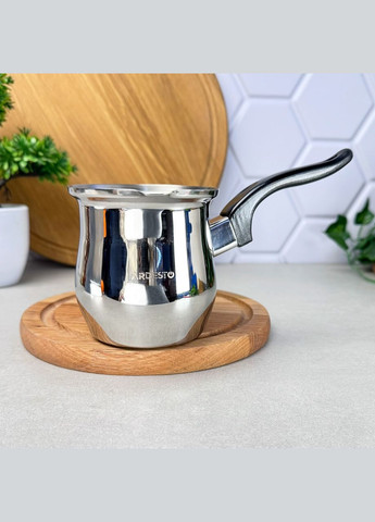 Турка металлическая - это продукт для тех, кто знает абсолютно точно: наиболее вкусным кофе получится, если он приготовлен в турке и великолепно, если по старинному рецепту. Турка пригодится всем, кто хочет удивить своих гостей и насладиться ароматом традиционного кофейного напитка. Турка для кофе создана для приготовления великолепного кофе по-восточному. Используя ее на любых кухонных плитах (за исключением индукционных) Вы сможете насладиться чашкой ароматного и вкусного кофе. Материал: нержавеющая сталь, бакелит Полировка металла: зеркальная/сатин Материал ручки: бакелит (не нагревается) Объём 500 мл Диаметр: 9.5 см Толщина стенок 0.7 мм Совместимость с печами. Газовые, электрические, стеклокерамические Уход: После остывания турки рекомендуется сразу вымыть ее при помощи небольшого количества моющего средства.
