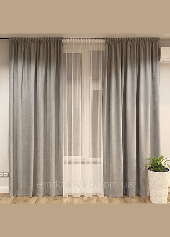 Шторы Микровелюр/Diamond на тесьме Тюль Вуаль-бамбук с фабричным утяжелителем, на тесьме Цвет штор Серый Цвет тюля Тепло-белый, Ivory, молочный, шампань Размер: • Ширина штор 180 см – каждая штора • Ширина тюля Выбирается в размерном ряду. • Высота штор 250 см Высота штор – может быть любой, до 285 см – на стоимость не влияет. Если высота штор требуется от 290 см и выше – напишите нужный размер высоты при оформлении заказа. Вам произведут расчет стоимости штор для указанных в заказе размеров. • Высота тюля 250 см – одинаковая со шторами. По желанию, высоту тюля можно сделать меньше или больше, чем в шторах до 320 см – заказывайте нужную высоту тюля при оформлении заказа. Список размеров тюля, в комплект из 2-х штор, шириной - 180 см, каждая • Шторы - 180 см. 2 шт + тюль 300 см.1 шт • Шторы – 180 см. 2 шт + тюль 350 см.1 шт • Шторы – 180 см. 2 шт + тюль 400 см.1 шт • Шторы – 180 см. 2 шт + тюль 450 см.1 шт • Шторы – 180 см. 2 шт + тюль 500 см.1 шт • Шторы – 180 см. 2 шт + тюль 550 см.1 шт • Шторы – 180 см. 2 шт + тюль 600 см.1 шт • Шторы – 180 см. 2 шт + тюль 700 см.1 шт • Шторы – 180 см. 2 шт + тюль 750 см.1 шт Предлагаемые комплекты, для заказа, с возможностью выбора разного размера ширины тюля в комплекте, помогут Вам выбрать – наиболее подходящий комплект штор. Выбрать необходимый размер ширины тюля в комплекте со шторами, Вы можете в размерном ряду, расположенном возле кнопки – купить. Характеристика материала для штор Ткань Микровелюр/Diamond - мягкая на ощупь, имеет не большую ворсистость, не тяжелая, имеет среднюю плотность переплетения волокон (нитей), это позволяет формировать легкие и густые составы (фалды) в изделиях. Ткань обладает высокой износостойкостью, после стирки (см. "Рекомендации по уходу") сохраняет первоначальный вид, не деформируется, не изменяет цвет. Производитель ткани Турция Высота ткани в рулоне 300 cm Состав 100 % ТЭ Вес/плотность 675 г/м Назначение ткань для штор, покрывал, чехлов, декор. наволочек на подушки. Применение шторы в ширину 180 см × 2 шт., подходят на карниз в ширину от 150 см до 250 см. Если шторы будут использоваться как декоративные, то есть они не будут двигаться по карнизу, для полного закрытия окна карниз может быть любой ширины. Мягкие фалды, образующиеся при стягивании тесмы, достаточно хорошо закрывают солнечный свет в дневное время. В вечернее и ночное время, когда включено освещение, закрывают окно с улицы от -50% до -70%. Шторы из Микровелюра/Diamond хорошо подойдут для любого типа помещений, квартиры, дома, комнаты. Характеристика материала для тюля Ткань - Бамбук с фабричным утяжелителем - это дышащая ткань не создает парникового эффекта, хорошо пропускает через себя воздух. Имеет сетчатую фактуру с прожилками, тонкая, но очень прочная, относится к серии тканей антикиготи. Воздушная, легкая, матовая (без блеска), образует очень мягко ниспадающие фалды (склады). За счет сетчатой фактуры, равномерно рассеивающий солнечный свет в помещении, препятствует выгоранию, от солнечных лучей, предметов интерьера. Ткань обладает высокой износостойкостью, выдерживает более 50 стирок, в то же время не теряя своего качества, после стирки не деформируется, не теряет цвет. Производитель ткани Турция Высота ткани в рулоне 330 см Состав 100% ПЭ Назначение ткань применяется для декорации окон и равномерного рассеяния солнечных лучей в помещении в дневное время. Хорошо декорирует окно в любых помещениях. Примене